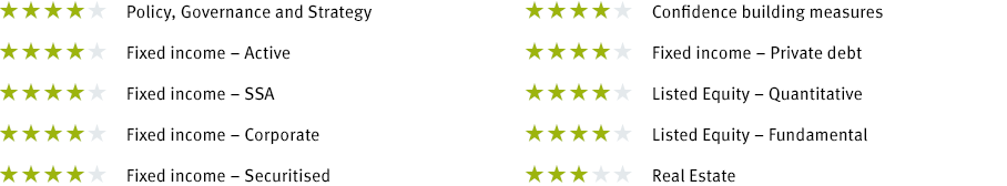 In addition, “institutional credibility”, “product standards” and “portfolio focus” (selection and dialogue strategy, KPIs) are assessed in a tiered model.